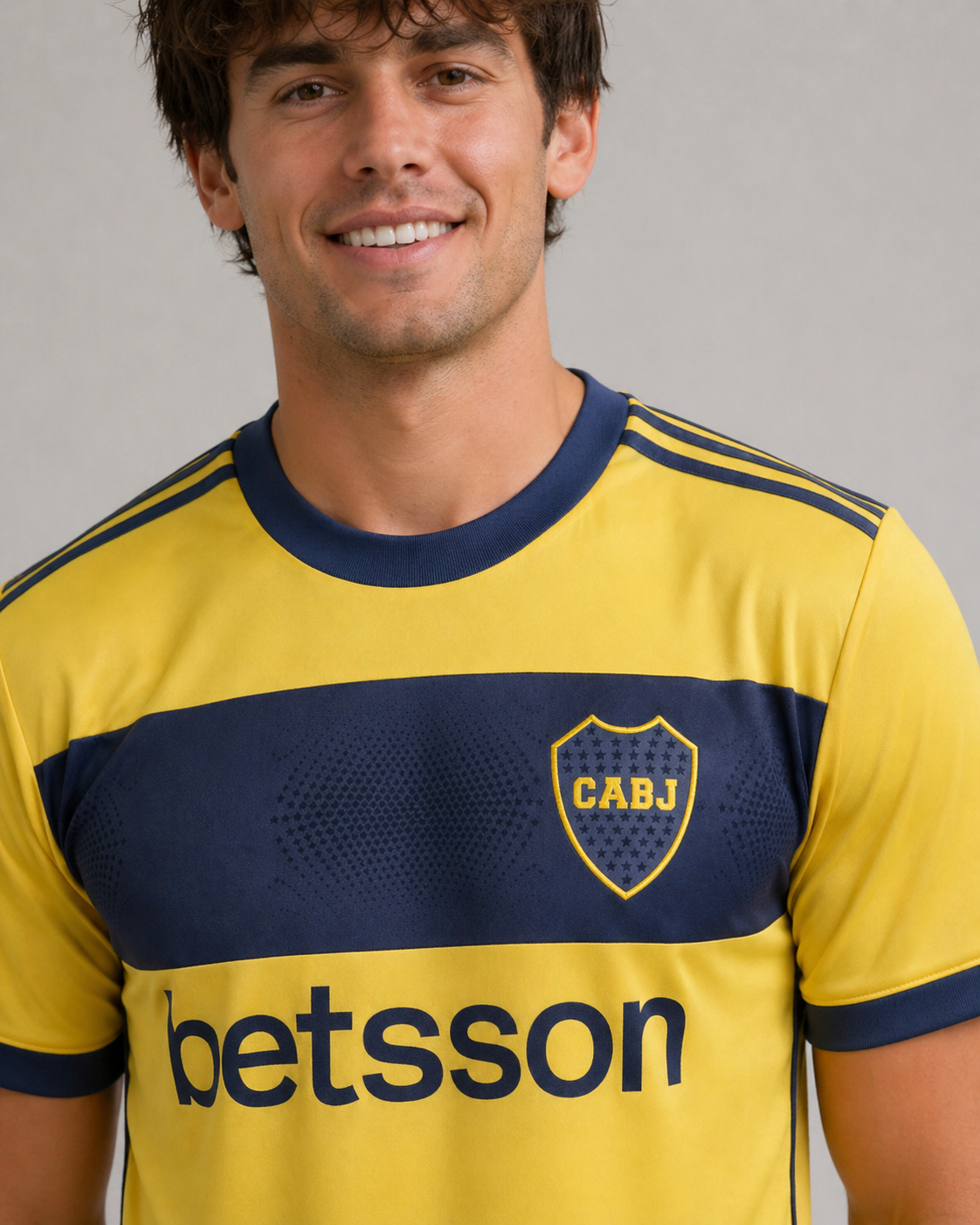 – **Diseño Moderno:** La camiseta presenta un diseño atractivo en un vibrante tono que resalta la identidad del club, con detalles en azul y amarillo que evocan los colores tradicionales de Boca Juniors. Un escudo bordado meticulosamente añade un toque de elegancia y orgullo.