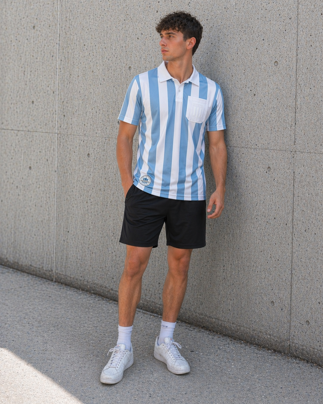 – **Material Premium**: Confeccionada en una mezcla de algodón de alta calidad, esta chomba ofrece una sensación suave y cómoda sobre la piel, ideal para el uso diario y para aquellos días de partido.