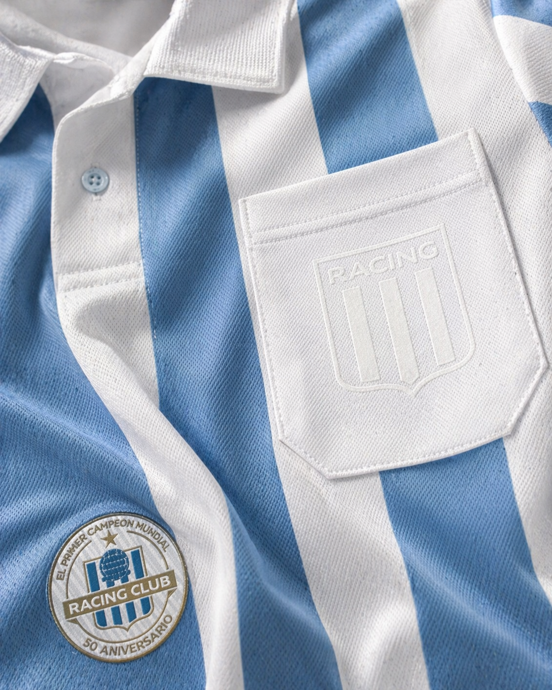 – **Diseño Emblemático**: Presenta los colores clásicos de Racing Club y un gráfico conmemorativo en el pecho, diseñado para evocar la historia y el orgullo de ser parte de la Familia Racinguista.