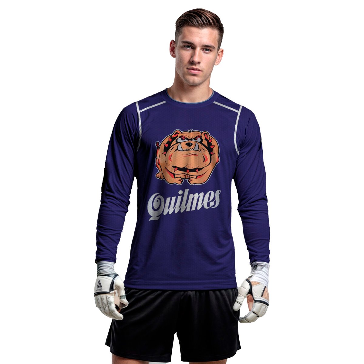 - Colores: Azul con detalles en blanco y el logo del Bulldog y Quilmes.