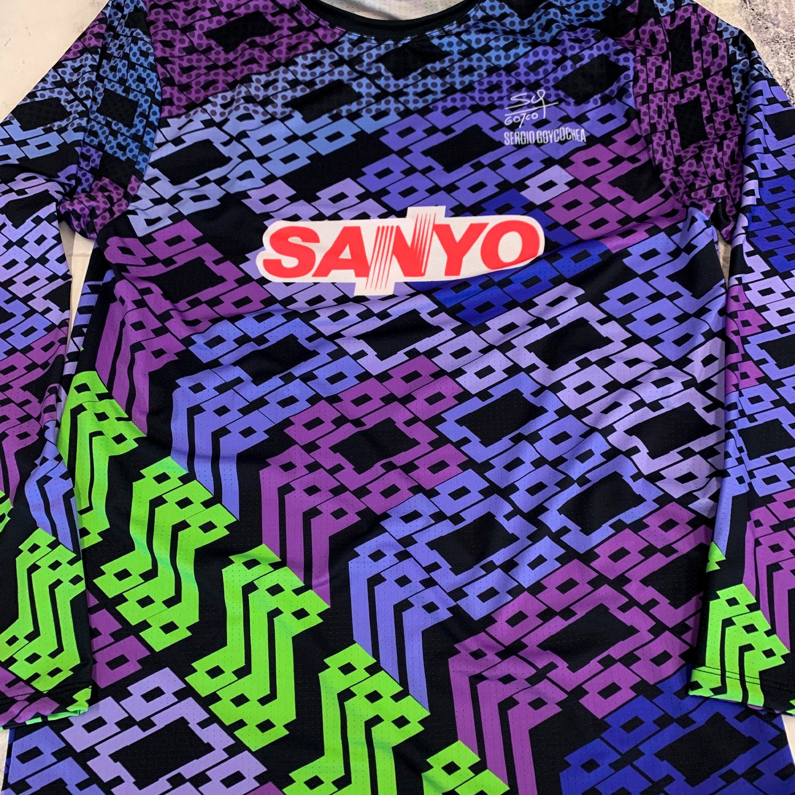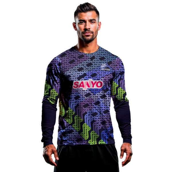 - Diseño Retro con un Toque Moderno: Inspirada en la icónica camiseta que Goycochea usó en los 90, esta prenda combina patrones geométricos con una paleta de colores audaz, capturando la esencia de la época.