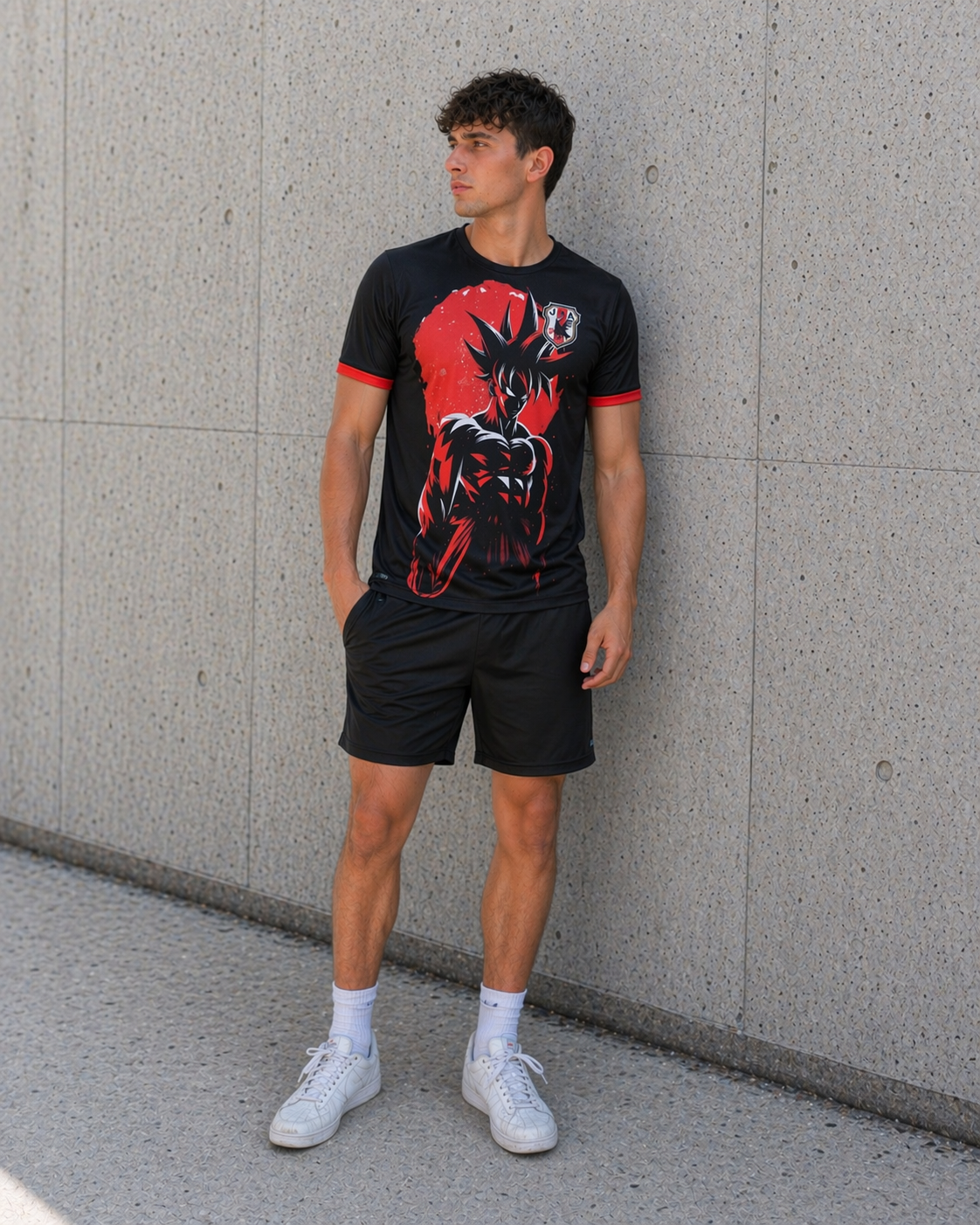 Fusioná tu pasión por el fútbol y el anime con esta camiseta edición especial de la Selección de Japón inspirada en Goku. Con un diseño impactante, esta camiseta combina el negro con detalles en rojo y una impresionante ilustración de Goku en su forma más poderosa en el centro del pecho. El escudo de la selección japonesa en el lado izquierdo refuerza la identidad futbolística de esta pieza única.